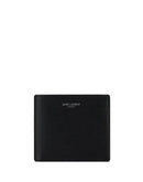Calfskin Wallet by Saint Laurent, billfold design, interior card slots, bill compartment, iconic brand signature press-stamped on front, grained leather design.
