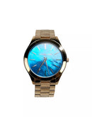 Michael Kors Slim Runway Stainless Steel Watch MK3494 Ocean Blue Gold NO BOX