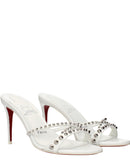 The product with MPN 3240181N302 and code F85405 leather in white is a sandals designed by Louboutin. It has features like studs.