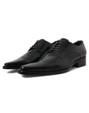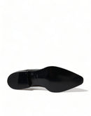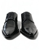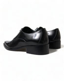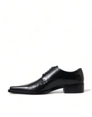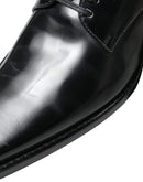 Dolce & Gabbana Black Leather Lace Up Formal Flats Shoes