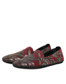 Dolce & Gabbana Bordeaux Jacquard Leather Slip On Loafer Shoes