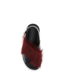 The fur-lined Fussbett Sandals by Marni combine comfort and style in a unique design. Crafted from soft calfskin, they feature an elegant crossover strap and an adjustable buckle closure for a customizable fit. The rubber sole ensures durability and comfort, while the embossed Marni lettering on the heel adds a distinctive touch. The fur design adds a touch of originality, making these sandals perfect for those seeking an accessory that combines functionality and fashion.