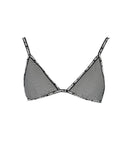 triangle swimsuit, lined interior, removable padding, contrasting details, clip closure, print, logo