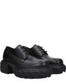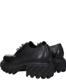 The product with MPN OMIF029LEA0011010 and code F79785 leather in black is a lace up and monkstrap designed by Off-White. It has features like back detail, back logo, side logo.